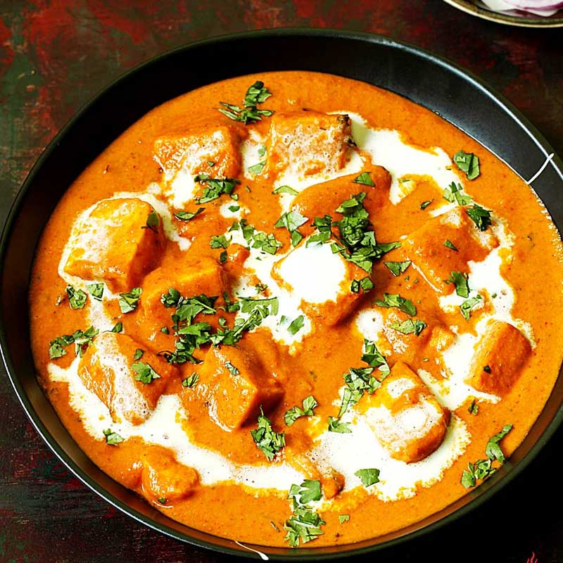 V • GF · Ingredients: paneer (dairy), tomato, butter (dairy), cream (dairy), cashew (tree nuts), spices