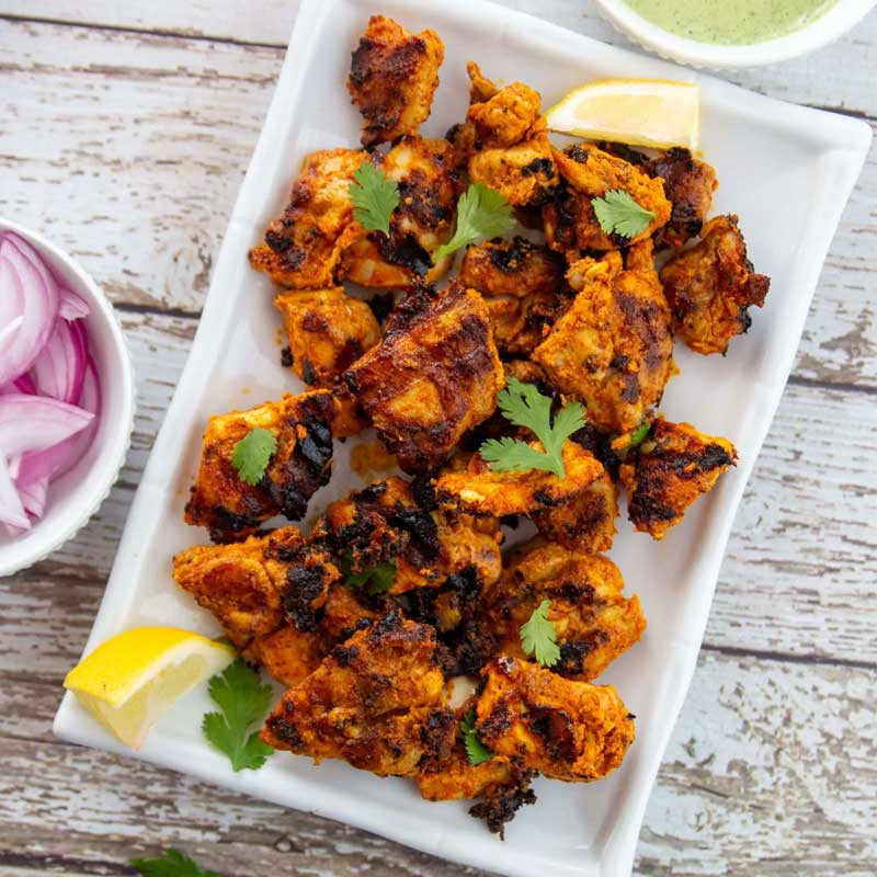 GF • DF – Ingredients: chicken tikka, spices – Grilled chicken tikka served as a main dish.