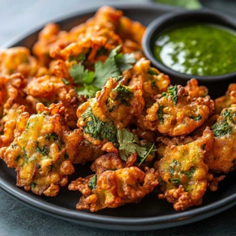 V • VG • DF – Ingredients: gram flour, mixed vegetables, spices – Crunchy assortment of vegetables coated in spiced gram flour batter and deep-fried.