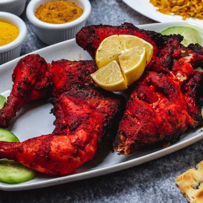 GF • DF – Ingredients: chicken, yoghurt (dairy), ginger, garlic, spices – Char-grilled full chicken marinated in tandoori spices.